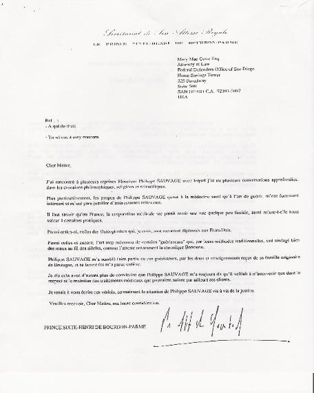 I demand that this letter be produced in the defense of Philip Sauvage and I grant you my total