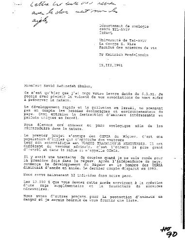 | OZNIA EAGLE SAVED FROM EXTINCTION In early March 1991, Philip Savage transferred $1000 from OJD bank account to the Tel-Aviv University organization led by Professor Heinrich. Mendelsohn who was fearing the extinction of the unique OSNIA eagle species, an important national symbol that once populated Israel's Negev desert. In great appreciation for the contribution, on March 15, 1991, Prof. Mendelsohn responded with a personal thank you letter addressed to the OJD officer David Rafizadeh, and included a 5-page report that he had written about the unique special species of Black Vulture. When Philip Savage was made aware of the dire situation of this almost extinct species, he reciprocated the gratitude and concern expressed by the professor and "processed" the few existing individual birds that had been reintroduced in the Negev park referred to in Prof. Mendelsohn's letter. As an immediate result of Dr. Savage's SDI processing, it is documented as historical fact that the ..... (SPECIES HAS EVADED EXTINCTION AND IS REPRODUCING.....). A 1993 following article in National Geographic magazine by David Mazie confirms "Thirteen of the rare birds now dwell in the Tel Aviv Univeristy aviary, more than when the rescue mission started":