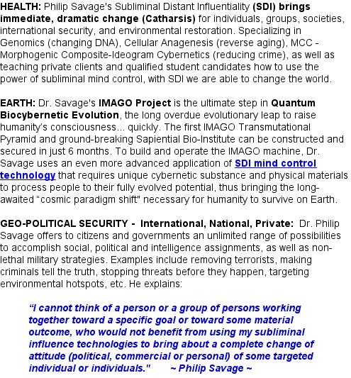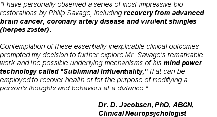 "People actively exposed to my subliminal procedure are driven to do, unconsciously, things they otherwise would not do, or vice versa, not do things they otherwise would do." ~ Philip Savage ~