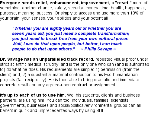 This website is produced by students of Philip Savage to offer PROOF to the people that SDI works - visible, certain, scientific results, on your own bodies.